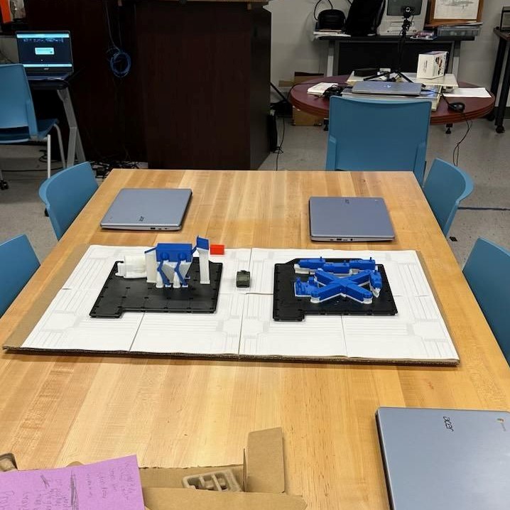 A makerspace doubling as an engineering classroom. Students may 3D print, use the computers/laptops complete with needed engineering software, or view CAU student 3D modeling and robotics projects